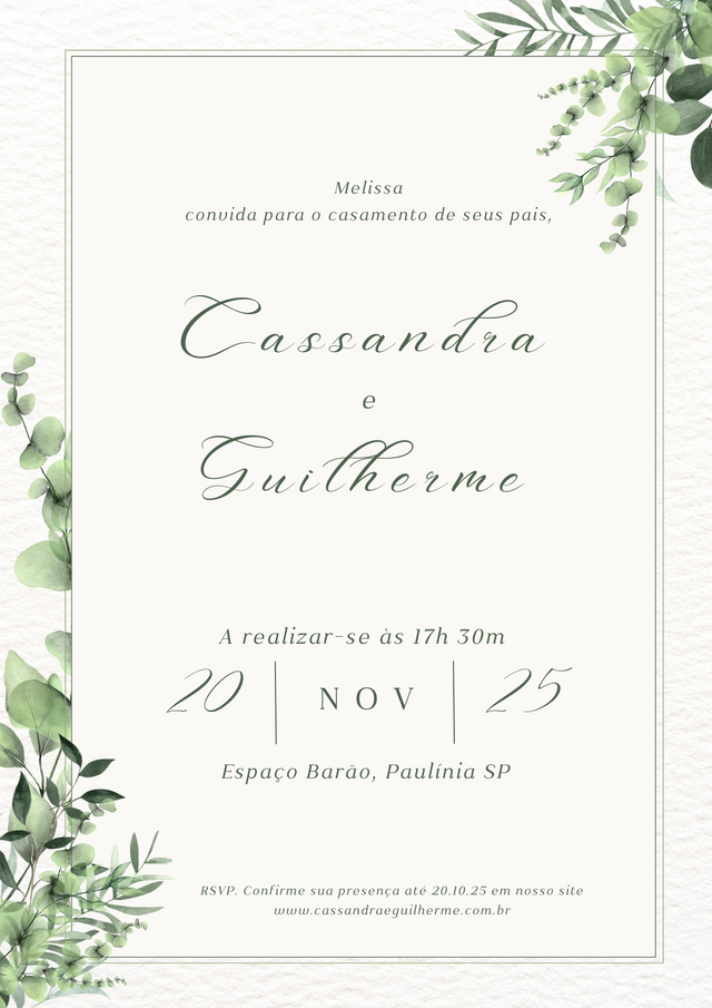 Este dia será ainda mais especial, com a sua presença! Por favor, acesse o link abaixo e confirme seu convite, até 20/10/25 CONFIRME AQUI♥